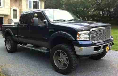 2006 FORD LIFTED F250 LARIAT POWER STROKE TURBO DIESEL CREW CAB, 6 LITER, 100,XXX MILES, DARK BLUE EXTERIOR, TAN LEATHER INTERIOR, 6 FT BED,