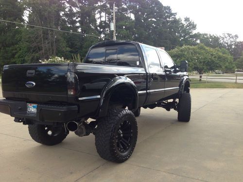 this is a 2008 ford F-250. completely blacked out. has a customized 15.5 in fabtech 4.0 dirt logic suspension lift kit, with front and rear traction bars. all anodized front, rear, and steering stabilizer shocks. the truck is on 40 in x 15.5 in toyo MT tires, with black 22 inch kmc xd monster wheels. tented windows, blacked turn signal lights on mirrors, recon black headlights, tail lights, third stealth break light, cab lights, tailgate extreme light bar. blacked front and rear bumpers. painted rancho black fender flairs, black rolling big power grill. custom hood with twin, real working, hood scoops. illuminating super duty door panels, amp steps that retract when doors are closed. daytime LED mercedes style running lights. has moon roof. 5 inch exhaust tip with 4 inch exhaust all the way back to engine. 275 horsepower H&S programmer with digital screen with 3 different power settings. 4/10 geers. custom built door panels for the system in the truck. total the truck has 12 tweeters, 8 mids, 2 kicker L7 square 12inch subs, 3 amps for 5000 total watts. - all components are kicker with alpine touch screen deck. back seat is a 60/ 40 split. 60 % of seat is in while 40 % is removed for subs and amps. currently the truck comfortably seats 4 people. i do have factory seat and it could be put back in if needed, it will be sold with truck. 55 gallon custom fuel tank. spray in bed liner. Has 1000 LEDs underneath truck and in fender wells, with remote and screen for the lights. the LEDs changes to 4.2 million different colors. front blue scanning night rider light. TRUCK HAS NEVER BEEN OFF ROAD!! this truck has been babied! NEVER been smoked in, drank in, or ate in. TRUCK HAS OVER $125,000 INVESTED. for anymore questions or concerns please call 903-220-9344.