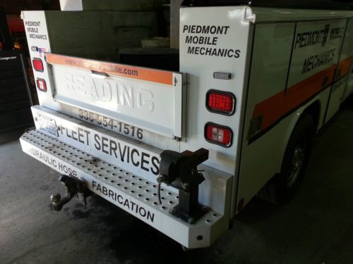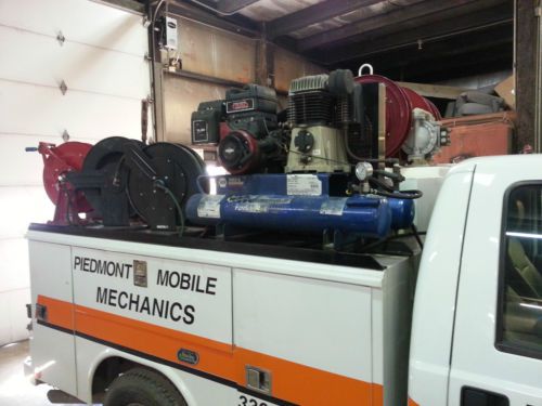 2011 Ford F-250 Service Truck. Set up for diesel maintance and repair. It has a two product lube skid in the bed, 50 gal each and 100 gal waste oil, 125#lb grease, air compressor is a 2 stage Napa compressor, has a vise and torches, also a bank of 3 small drawer on the right front cabinet. Bed is a Reading aluminum eco bed Truck is dirty but does clean up nicely, I will have it professionally detailed when it sells. Truck has strobes on the front and rear for on-road repair. ****I will have truck detailed and decals removed when it sells**** |
