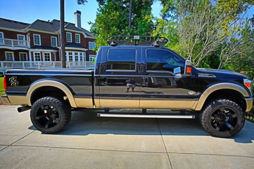 up for grabs is my 2013 Ford F250 King Ranch. This truck is a beast. 6.7 L Turbo Diesel Engine. Has a lot of upgrades which I will list below: H&S Race programmer (cant get these anymore) $3000 Airaid Intake System $500 Flo-pro 5 inch turbo back exhaust $800 Fatboy Traction Bars $1200 Pro Comps 3 inch lift $700 Rhino Racks with Basket $800 Flip Aluminum Tonneau cover $700 LineX spray in bedliner $400 Tinted windows $100 22 inch Rockstar wheels with Nitto Mud Grappler Tires $6000 HID Fog lights wit Bracket $600 RIGID LED light bar with mounting bracket $800 Dual matching hard wired Headrest DVD players with 4 Headphones $2000