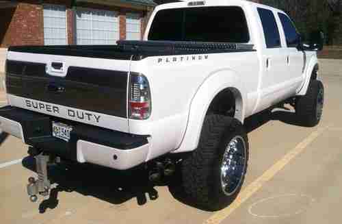 THE NICEST F250 ON EBAY!!!!! EVERYTHING YOU CAN WANT IN A TRUCK IS IN THIS ONE. THIS IS A 2013 FORD F250 PLATINUM EDITION FX4. TRUCK IS STILL UNDER FACTORY WARRANTY I HAVE OVER $20K IN AFTERMARKET IDEMS AND YOU CAN HAVE IT FOR A FRACTION OF THE COST I PUT IN IT. I HAVE LISTED ALL THE EXTRA ITEMS ON THE TRUCK ABOVE AND YOU CAN SEE THEM IN THE PHOTOS AS WELL. THIS TRUCK HAS NEVER BEEN OFF ROAD OR SMOKED IN. I TRULY LOVE THIS TRUCK BUT I HAVE TO MOVE ON TO MY NEXT PROJECT. TRUCK HAS ALMOST 8000 MILES ON IT AND I STILL DRIVE IT LOCALLY AROUND. THIS IS A MUST HAVE TRUCK AND THE PICTURE SPEAK FOR THEMSELVES. BUYER OF THIS TRUCK WILL BE RESPONSIBLE FOR THE SHIPPING/PICKING UP OF THE TRUCK. IF YOU HAVE ANY QUESTIONS PLEASE FEEL FREE TO EMAIL ME AND I WILL GET RIGHT BACK TO YOU. THANKS FOR LOOKING.