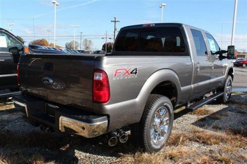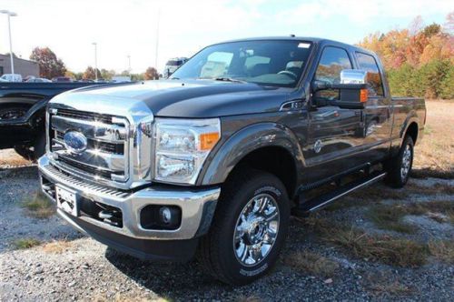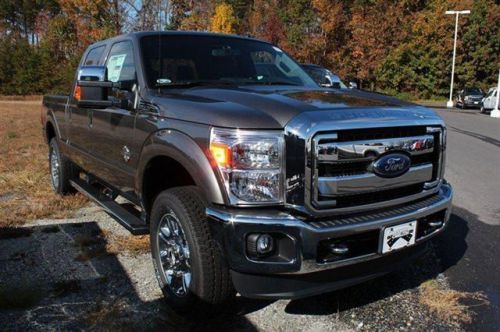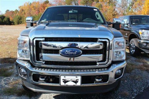 This 2014 Ford Super Duty F-250 SRW 4WD Crew Cab 156 Lariat 4x4 Truck features a 6.7L V8 POWER STROKE 8cyl Diesel engine. It is equipped with a 6 Speed Shiftable Automatic transmission. The vehicle is Sterling Gray Metallic with a Black Leather interior. It is offered with a full factory warranty. - Power Steering, Passenger Airbag, Side Airbags, Traction Control, 20 inch Chrome Wheels, Leather Interior Surface, Four Wheel Drive -