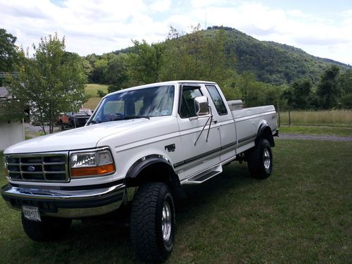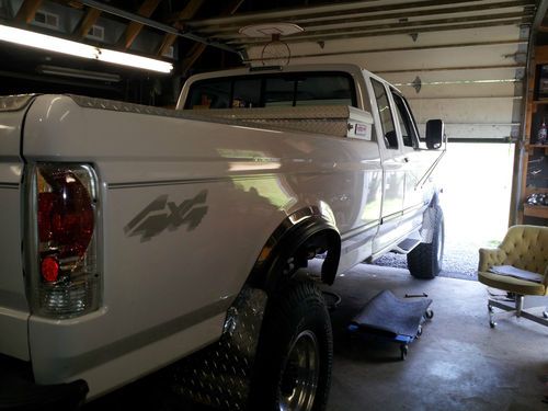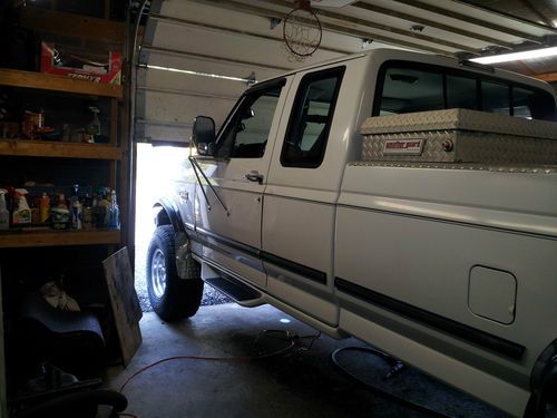 Selling my 1997 F 250 Ford truck, great truck, only 126,000 miles, the truck looks fairly stock, but has been extensively modified. First the Twin I-Beam Dana 50 removed to make room for the Dana 60 Old School Front Axle, (King-Pins Axle) , Much easier maintenance then( ball joints). The truck has new leaf springs Skyjacker Soft-Ride springs. To adjust the ride height Air-Bags were installed Front and Back. Fronts are 3" compressed to 9" fully expanded. Rated1300lbs each. Rear bags are 4" compressed and 13" fully expanded. The Front Rear has a Heavy-Duty Panhard Bar to control front stability along with 3/4 of a High Steering System, Note the Steering Link from Box to Passenger side Knuckle is Above the Leaf-spring. The drag-link is still below. Rear-end has Panhard Bar to keep it in True, along with Heavy Track Bars, All Adjustable Joints are Super-Pivot type, and all joints are greasable. Rear Brakes are all New, all internals and brake cylinder and drums, and Painted. Front Brake Calipers and Pads are New the Rotors that where on dana 60 rear when purchased, where reused. All Brake Hoses and Lines are New, including the Rear Anti-Lock Brake Actuator. New Skyjacker Hydro 7000 Shocks all around along with Steering Stabilizer. The Air-Bag Preesure is Controled using Two Little-Larry's Manual Control Valves, Front and Back Controlled separately. (No electric two mess with). Control Valves are Mounted in Dash with a Two- Needle Gauge just above. 2 needles in one gauge. Air Pressure for the system comes from a New Compressor and Two- gallon tank in the Bed Tool-Box. Power, 4" Gale Banks ( Monster)Stainless exhaust, 3" from Turbo to Cat. 4" through Monster Muffler to a 6" Polished Exhaust Tip. Intercooler has been Added to help in Power, some parts used are Banks and some are a Kit for a Mustang intercooler, works Great! All Piping 3" Polished and the 4" Intercooler is Polished also. Gale Banks Power-Chip is Installed on Factory Computer, along with the Banks Trans-Commander is installed for nice Trans Shifts. Always plenty of Power, never any Nasty Black Smoke. All Banks Gauges Installed to monitor Engine Exhaust and Transmission Temps, along with a Turbo Boost Pressure Gauge, mounted on A-Pillar and has Switch to turn off gauge lights if not needed. Truck moves out nicely, 4:10 gear ratio in rears work good with the bigger tires. New 180 Watt per-channel JVC sat ready Stereo has been installed along with Sony Explode Speakers front and back all installed behind factory speaker Grills to keep clean looking. Has a USB port in front for I-pod or other Music Storage Device. I have owned truck for about years, I have put about 35,000 miles on truck and it has never given me any problems, even starts right up in the winter, New Starter installed also. Truck has a few character marks on it, and some surface rust starting on passenger door behind trim on door. Truck was Zebart Treated when it was new, they drill holes in the body and spray in rust prevention coating, and has kept the body in very good condition.