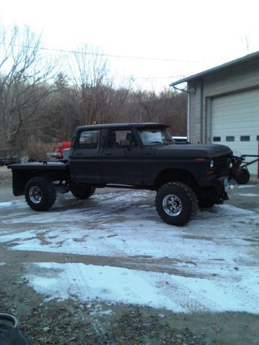 Hello, I have a 1978 Crew Cab flatbed. 351m, C-6 trans, B+M floor shifter, Trans cooler, 6inch skyjacker springs front and back, borgeson steering shaft, fenderwell headers with simple exhaust, Has w/shield visor. The truck runs and drives very well. The truck comes with a 7 1/2 ft western plow that works fine. The truck is 100% reliable, I have plowed with it for years. The truck is very rusty, but has some good years left on it. I have a fresh 351M motor that comes with truck. The rims and tires that are in the pics do not come with truck. Truck presently sits on 33in swampers with aluminum rims.