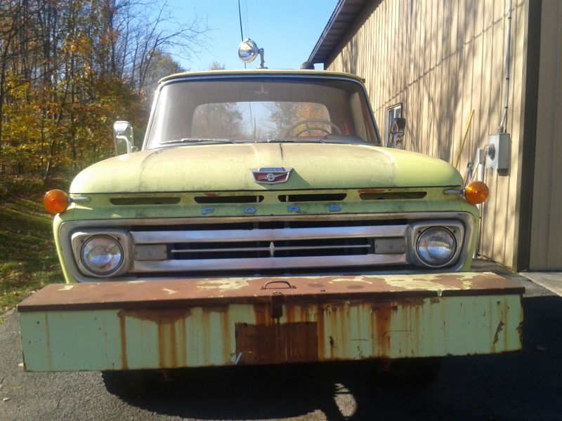 1962 F250 4X4 cab and chassis. 292 V8 4 speed on floor. Former brush fire truck used during summer months. Some rust lower back of cab, passenger door step and front floor cab mounts. Seat reupholstered. Needs all brake slave cylinders rebuilt. New (6)radial tires. Clean and rare find.