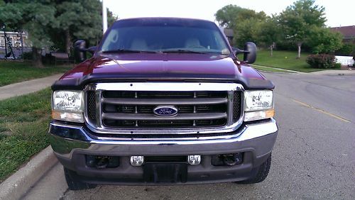 I am offering for auction a 2002 Ford F250 Super Duty 4x4 Lariat crew cab with 7.3 Turbo-diesel and auto transmission. It has power leather heated seats, power steering, power brakes, power windows, cold air, tow package, off road package, cold weather package, alloy wheels, an ATC Astro fiberglass shell, factory 6 CD player, and a vinyl bedliner. It has 162,300 miles (mileage will vary some, as I'm still driving it). I'm the 2nd owner (inherited it in a divorce from the original owner) and am selling it as it's just more truck than I need. Truck has a Gear Vendor overdrive unit attached to the transmission which was just rebuilt within the past 1000 miles (a $3000.00 option added in 2007). Also within the past 500 miles the truck has had new brakes all the way around (new pads, rotors turned, calipers rebuilt, fluid flushed and bled), new exhaust, steering shock replaced, transmission flushed and serviced, engine oil & filter changed, and the fuel filter changed. I've been around this truck for 7 years and have never had it fail to start in the winter (without ever plugging it in). Tires are at 50%. This truck was operated by a smoker but has not been smoked in for over a year. Truck came out of Iowa originally and is not undercoated.
