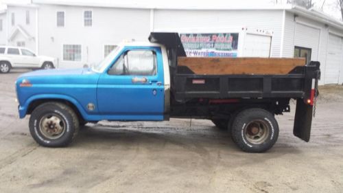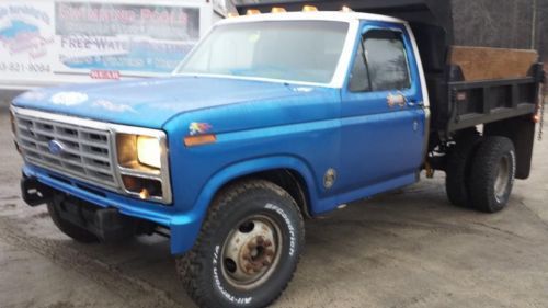 This truck has a clean title!!! i am re listing it because I accidentally checked off it was salvage For Sale is a one owner 1986 Ford F350 Diesel Dump Truck. This truck was owned by my uncle since 3/31/1986. It has 128,272 miles. The diesel engine is very strong and runs excellent. This truck has been well maintained mechanically, The body is in good condition and needs some minor cosmetics. (I.E: marker lights, wipers, and basically a new paint job). The dump body is in EXCELLENT condition for being 27 years old. There is no rot or rust on the dump body. There is no front bumper, Great project. We have some pictures on here. The truck is not perfect and does need some love. all 6 six tires have 70% tread left. New rear brakes, no leaks or slips..... The clutch is fairly new and has about 10,000 miles on it. It has never been plowed with ( it is rear wheel drive ). Great in the snow it is a very heavy truck. The paint is partially blue a and white (see the pics). This truck was used on a farm to move trailers, Hay, and keep a sander on the back. It was garaged in the barn. Come take a look anytime. it is located in Manchester NH. We are about 5 minutes from the Manchester Airport, about 1 hour from Boston Logan. We can assist in picking up if needed, If delivery is needed we work with a local transport companies that provide low rates, that being said the buyer is responsible for shipping. Payment is due within 24 hours after the auction end. We don't accept paypal or credit cards because of high fees. We accept cash, Certified funds, or most preferred secure bank wire transfer ONLY. If any questions or concerns please feel free to message us through ebay and I will respond asap. There is no reserve and will be sold to the highest bidder