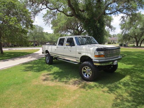 1992 FORD F-350 CREW CAB 4X4. 86,500 ORIGINAL MILES. ORIGINAL PAINT, STILL SHINEY. FORD 460 W/ AUTOMATIC TRANS. TRANNY TEMP GUAGE AND BANKS TRANSCOMMAND ADDED. 410 GEARS. 4" LIFT. 315/70-18 TOYO M/T ON 18X10 MAZZI HULK WHEELS WITH APPROX 3,000 MILES. NO ACCIDENTS. NO RUST. NO DENTS. ALUMINUM ACCENTS. HIGH PERFORMANCE AFTERMARKET CATALYTIC CONVERTER W/ MAGNAFLOW MUFFLER. ALL SERVICE RECORDS. OIL CHANGED EVERY 3,000 MILES. COMPLETE SERVICE MANUALS FOR ENGINE, BODY AND CHASSIS. DUAL GAS TANKS. BILLET GRILL. BEDLINER. RIDE RIGHT AIR BAGS. MATCHING SNUGTOP CAMPER SHELL. TOW PACKAGE WITH TRAILER BRAKE ASSIST AND RV WIRING PLUG. SATELLITE EQUIPPED JVC STEREO. ANY ADDITIONAL QUESTIONS CALL JEFF AT (210)865-8304.