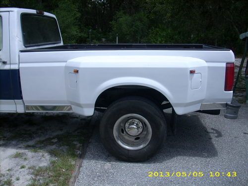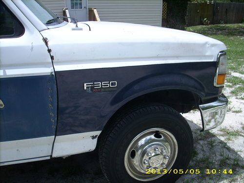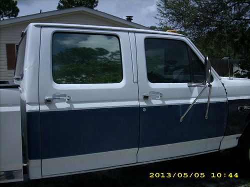 THE GOOD !1994 Ford F 350 Dually Crew Cab Has 35 Miles on COMPLETE REBUILD Of 7.5 Gas Engine w/ a complete file on the rebuild. IF YOU WANT THE FILE ON THE REBUILD YOU WILL HAVE TO SEND ME AN E-MAIL ADDRESS ! It's just too BIGG ! New Rings,heads done,Head bolts, Double timing chain and gears,Oil pump and all gaskets,Water pump,alternator, Thermostat,Plugs,Wires,Cap and Rotor,Radiator and all belts and hoses,Muffler and tailpipe, New front tires and brakes,STOPS But Need bled after brake install, 2 NEW FRONT TIRES, Rears are @ app 50 %, New Chrome front Bumper,Radio w/ speakers 4 new power window motors and 2 new power door lock actuators, Battery,New Dually rear fenders and Led lights, Truck is equipped w/ a full Factory Ford bedliner. Hot heat and Icy ColdA/C NEW Orifice tube, New Flywheel. Transmission rebuilt 2 years ago and has app. 11000 miles on it according to previous owner . New L and R Head light bezels as well as new chrome grill, New Headliner, Needs minor body work and paint to finish. I have more than $ 6000.00 in the truck w/ Recipts and have no time to finish .ALL Recipts will go to the NEW Owner. RESERVE WILL Be considerably lower than what I have in the truck but please DO NOT ASK WHAT THE RESERVE IS As I will NOT Release that info. ALL Lights are functional. THE BAD , Needs Paint and Body work but the truck is presentable in my opinion. PLEASE LOOK Closely @ ALL The Pics of the body and make your own judgement call ! Both front Door lock actuators work BUT The REAR 2 DO NOT. I am unable to check the Cruise control as I ONLY Drive it locally.Front Seats are equipped w/ Lumbar but does NOT Function. Windshield has a Crack on Pass side $ 200.00 additional w/ install,SEE PIC" Carpet is dirty, Should have a FULL Detail. Truck is equipped w/ front and Rear Tanks @ this time I can ONLY Verify that the rear tank is functioning as there is NO Filler tube on the front tank BUT The PUMP Is functioning as when I switch the tanks over you can hear the pump engage I have been as fourthwright w/ the condition of this truck as I can possibly be BUT PLEASE ASK If you have any specific questions or concerns ! I WILL Be Truthful !!!