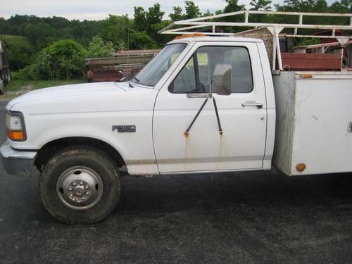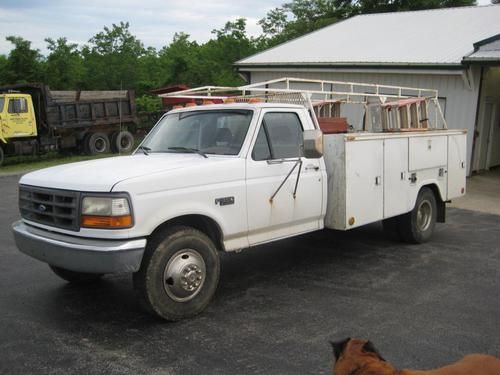 1994 Ford F350, 12ft utility bed with lift gate. New crate engine installed at 158k. Runs great and has good tires. JOBOX and ladders are NOT included.