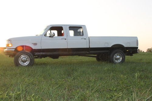 1996 Ford F-350 4x4 Crew Cab XLT, single wheel base long bed, 7.3 Powerstroke diesel, with 136k miles. It has an automatic transmission that shifts great through all the gears. Strong powerstroke engine with a TS performance chip. The front end is good and tight and handles great at 70mph. It has lock out hubs on it and has 4-high and low. This truck is in great condition for being 17 years old. The truck has bed-liner sprayed rocker panels all the way around. The interior is in great shape. It's a great truck and I wouldn't hesitate to take it anywhere. If you have any questions, please don't hesitate to give me (Jason) a call at 918.244.1266.