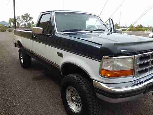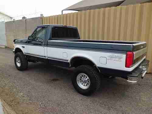 This auction is for a 1996 Ford F-350 XLT SRW Regular Cab 4X4. The truck has a 7.5 liter gas motor backed by a 4 speed electronic automatic transmission. The truck has 111k miles. I bought the truck last summer with 109k miles. Since I purchased the truck I put $1300.00 worth of wheels and tires. A $1500.00 kenwood / infinity sound system. I just had a shop here in town put on new head gaskets, a/c compressor, and front brakes for $1600.00. That work was done on 3/22/2013. It is very hard to come buy a 17 year old truck in this condition. There are a few marks on the tailgate and one on the hood (please see pictures). I would highly advise that you make arrangements to view the truck prior to bidding. It appears to be the original paint. This is a 100% rust free west coast truck. I thought my 16 year old would like the truck but he wanted a Honda instead. Feel free to call John at 602-206-0571 with any questions. Please do not bid if you don't have the means to pay for it. If you would like to see more pictures please e-mail me your e-mail address.