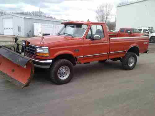 This is a 1996 ford F350 powerstroke diesel pickup 4x4. It has less than 153000 orginal miles. Newer front end parts like brakes,u joints and ball joints. Runs and drives good. It has gooseneck ball in the bed. Tires are 40%. Boss 9ft 2" v plow comes with it. It has the usual ford body rust. The right rear box side has a dent. Soild truck with alot of life left in it. I will be adding more pics. Truck is sold as is. It is also for sale locally and can end anytime. Thanks for looking. Any questions please call 608-235-0080 or 608-778-5045.