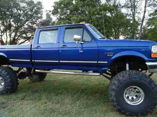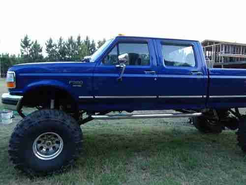 97 Crew Cab Diesel. This truck has 16" of lift and like new 44" Boggers. Truck has 1ton axles with 4:10 gears. The truck has a custom built 7.3 Powerstroke with a compound turbo setup. Behind it is an ATS transmission and torque converter. The motor and transmission are 5yrs old with less than 10k miles. Some of the other upgrades include, intercooler, FASS fuel pump, stainless lines, Terminator Dual HPOP, Crowder Rods, ARP Studs, 5" exhaust pipe, ETC... This truck is BIG and a HEAD TURNER. I have tried to take good pictures so you can see that the truck is in very good condition, but not perfect. Please come look at the truck yourself before bidding and ask any questions you have. Call or Text (229)733-0966
