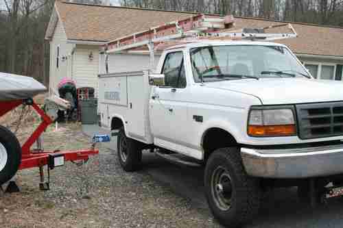 1997 Ford F-350 4x4 with 8' Boss plow. New master cylinder, brake booster , front calipers and rotors, rear wheel cylinders, new brakes on all four corners, new front brake lines, Brank new Dakota tires. 351 gas engine with 153,000 miles with new tune up at 152,500 miles. Has utility bed with lots of storage. Also has a ladder rack. Rear antilock is bypassed so ABS light is on sometimes. Small dent on front of hood, and surface rust on drivers side fender. No rust holes. Body in good shape for age of truck. Selling as-is. Truck is being sold locally so I have the right to pull listing if truck sells.