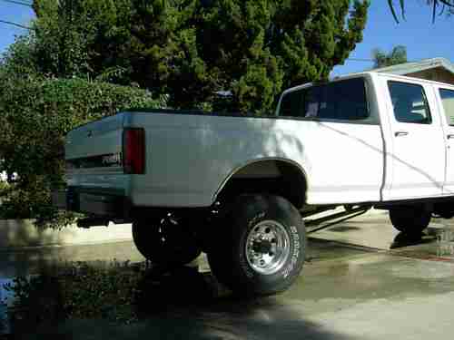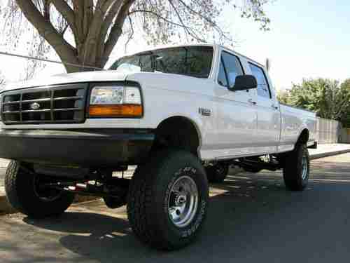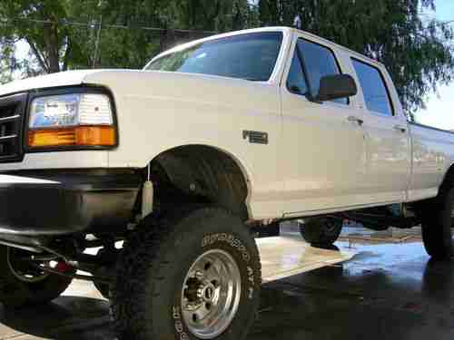 I have a 1997 ford f350 crew cab 7.3 diesel 4x4 with a 5 speed manual transmission with only 147,000 miles on it.This truck is in excellent mechanical condition.It has a four inch procomp lift, ladder bars and air bag system, new 35 inch all terrain tires. I have spent the last year and a half restoring this truck from the ground up and I have poured thousands of dollars into this project, Ill try to list everything I have done to it but its a long list. I took the body off and sand blasted the whole undercarriage and then replaced all of the body mounts when I reassembled it. I had the transmission completely rebuilt, I also replaced the clutch, clutch master and slave cylinder and it all still has a year left on its warranty. I replace the fuel injectors, valve cover gaskets, glow plugs and glow plug relay, the fuel pump and all the fuel hoses. New shocks, ac compressor, serpentine belt, new brakes front and rear,new front brake rotors and rear brake shoes hardware and rear axle seals and wheel cyls. New exhaust system form the turbo back. New front windshield, and interior, new leather seats front and rear, new carpet and dash pad and the whole interior has been completely isolated with thick padded insulation. I put in a nice kenwood stereo in with Bluetooth capabilities. 2 new batteries and battery cables, all the fluids have been replaced in every system.New power steering pump and gear box, s@b air filter system and a six position computer chip,needless to say this truck runs very good.The one thing this truck could use is a paint job there are a few small dings in it. There is a ton more to list, and I do have receipts for everything, I think you get the picture. This vehicle is listed locally and may be remove from Ebay at any time thank you for looking. David..