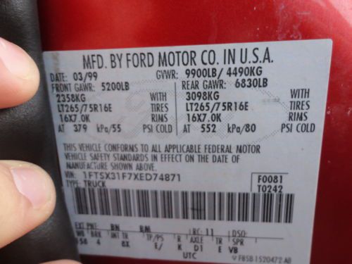 8 foot Bed Power Locks and Windows, Tilt Wheel, Cruise Control Manual hubs and Floor shift 4x4 Good tires, newer brakes, new windshield, and push plates for a Fisher Minute Mount Plow. New 4" exhaust from the turbo back. This truck has never been chip tuned or modified. It has factory aluminum running boards, Rhino liner spray in bed liner and a color matched visor above the windshield. I have every receipt and service record since this truck was new! It has been meticulously maintained and runs perfectly. I am the second Owner and a Non Smoker No accidents. I installed a new B&W Flip over Gooseneck hitch with complimenting Air Lift air springs last summer and used it 3 times. These photos were taken a year ago. I have put 17,000 miles on it since. Truck is being cleaned and detailed this week so I will update with current photos at that time. This truck has been maintained and recently gone over with a fine tooth comb by a diesel engine and 4x4 specialist and has had all recommended service done. The truck cost $38,000 in 1999 when it was new and I have the original dealer sticker that came with it. I purchased this truck to pull a toy hauler, but now I need a truck with a higher GVWR to haul a heavier trailer. I don't want to give up this well maintained 7.3 PSD but as it is, our truck gets used infrequently and I don't want this to sit around. I've looked into converting this to a dually and upgrade the suspension, but have decided it would decrease the value of the truck and be too costly so I am leaving it stock as is. The exterior of the cab is very clean. It has some rust spots starting on the bed and wheel arches and the passenger side cab corner is rusted. The interior is complete and very nice with no rips or holes in seats or dash. It has tan leather seats, carpeted floors and a flip up middle console to seat 6 passengers. No rips or tears in any of the upholstery. It has a factory AM/FM Radio with CD player. It has cruise control, tilt wheel, air conditioning and 4x4 shifter on the floor. Power windows and Locks, Power drivers seat, and wiring for a trailer brake controller. The trip calculator in the overhead console does not work. I never looked into why. The GVWR is 9,900lbs. It has factory alloy wheels and matching Firestone Transforce AT Load Range E (265/75R16) tires that are about 50-60%. The Transmission shifts nicely, the engine starts well in the cold, block heater works, 4x4 works flawlessly. It has Fisher Minute Mount Plow push plates installed by the previous owner but no wiring for the plow. I purchased this truck through a dealer who took it as a trade from the original owner. The glove box had a folder full of repair and maintenance receipts from the original owner. The previous owners spared no expense having everything kept up. I believe they purchased this new to haul a camper and to plow snow at their homestead. You are welcome to look through the entire stack of maintenance records for more clues. Aside from minor rust on the body from being in the northeast most of it's life, it is extremely clean and well cared for. Recent Work done in the past year includes: New Rear Caliper New Exhaust Gas Pressure Sensor with new Stainless Steel Tube Differential Fluid Flush and Replacement New exhaust manifold New complete 4 inch exhaust system from the turbo back Regular oil changes with Rotella T 15W40 oil Upper radiator hose inlet pipe replaced Fuel shut off valve o-rings replaced Fuel filters Air filters New windshield to replace recent crack from a rock Major items replaced by the previous owner include: New Torque Converter New Oil Pan Deposit will be accepted via Paypal or cash and final payment must be in the form of a Bank issued check or Cash. Shipping or pickup will be the responsibility of the buyer. This truck is for sale locally and I reserve the right to end the auction early. Thanks for looking and please call Tim at 734-891-1416 if you have any questions. On Feb-13-14 at 15:58:49 PST, seller added the following information: Added Information 2/13/14: This truck has power mirrors. They are also telescopic, meaning that you can manually extend them when pulling a trailer for wider visibility. It also has factory aluminum running boards, a Lund colormatched sun visor, factory aluminum running boards, and factory mud flaps. The truck has push plates (front mounts) for a Fisher Minute Mount Plow but the truck does not come with a plow or wiring harness for a plow. I can to help facilitate pickup if a buyer chooses to ship this vehicle. I have received a number of calls to inquire about a buy it now price. I would like to see the auction run its course but eBay will also allow me to end the auction early if I negotiate a price with an eBay member and process the sale through the site. Call me if you would like to discuss a buy it now option. On Feb-14-14 at 19:48:53 PST, seller added the following information: Added Information 2/14/14: The truck is wired for and has a mount for a Tekonsha Prodigy P2 Trailer Brake Controller. Wiring will work for many other electric trailer brake controllers as well. Brake Controller not included. On Feb-15-14 at 11:12:31 PST, seller added the following information: Added Information 2/15/14: The truck was photographed again this morning. A photo set with 82 photos has been uploaded to photobucket. To see all 82 photos CLICK THIS LINK The new photos taken this morning are below: |