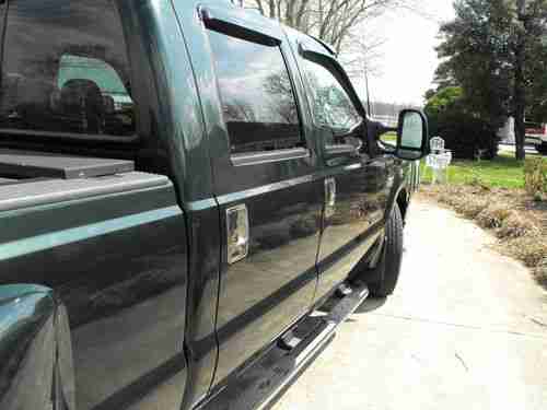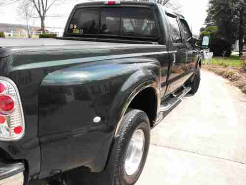 What you are looking at is one of the finest 02 F350 available!!! This truck has just over 70,000 miles. It has been babied and taken special care of. This truck shines just like new, the interior is spotless!! This truck is the closest thing to a new vehicle you can get. It has spent most of it's life in the garage and always maintained to perfection. Look at the pictures and bid with total confidence, if you are not satisfied you can have your deposiy back!!! There are very few scratches or dings on this truck. It is loaded with tilt, cruise, air, pwr locks windows mirrors, and both front seats. It has a 6 CD changer that sounds great. It has factory aluminum alloys with tiresat 85 to 90%. This truck has stainless door handle covers, gas door cover, tailgate handle cover, even stainleess steel over the wheel wells!! It has a waterproof bed cover that rolls up in a box in front of the bed. It comes with a 20K fifth wheel hitch, and even has airbags for the rearend. This truck will haul anything you put behind it!!!! And with only 70,000 miles, you know it isn't even broke in yet. There are so many extras I can't even tell you about all of them. It is equipped with fog lights, Stainless bruh guard, it even has green lights under the cab. If there is any questions feel free to call me at (270)862-3682 or my cell at (270)766-4258. Everything about this truck is in great condition. The motor runs excellent and the transmission shifs perfect. Like I said if you buy this truck and it isn't everything I say, I will give you your deposit back!!! The rear tail lights, the overhead cab lights, and the marker lights on the rear wheel wells have been changed to custom, but I have all the originals.