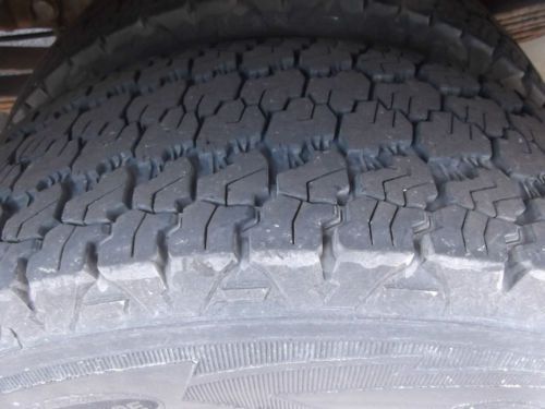 The Goodyear tires are LT235/75R16Es and have roughly 80% tread remaining all the way around. The rims are 16x6.0Ks.