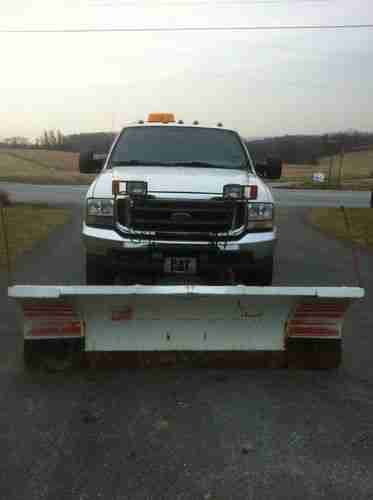For sale is a 2004 F-350 4x4 XLT reg cab, 5.4 gas engine, auto trans, power windows, power locks, a/c with approx 95k miles. Truck comes as pictured with a blizzard 810 power plow and an 8' buyers stainless steel spreader. Just installed 4 new studded snow tires, brand new! Truck is mechanically sound with lots of new parts, everything works as it should but will need a new bed at some point due to the rear upper fender arches rusing out. Has brand new PA state inspection just done last week. Truck is located in York, PA 17402.