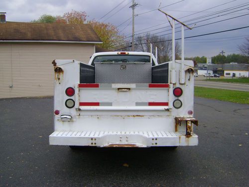 2005 FORD F350 SUPER DUTY XLT 6.0 Turbo PowerStroke, 4 Door, Diesel Automatic, Power Windows, Lock, Mirrors, ( Heated ), CD/AM/FM. Air, Ready to go to Work, Reading Box, Top and Side Compartments, Some with slide out Drawers, Side and Floor Tie Downs, Ladder Rack, Battery's New Last Year, Starts and Runs Great. Have Keys for all the Doors and Boxes. Body needs a little TLC, Has surface rust, Dents and Dings. Drivers seat has a edge wear hole ( can be seen in photo ) Its a Work Truck, They get Dents Dings and Scraps. Will pass New York State Inspection, No Codes in Computer, Everything works. Clean Car Fax ( Car Fax Shows all Service from the Date it was Transfered from PA TO NY, Oil was changed and Required Services was done at 4 to 6000 mile interval's as well as New Parts that were installed ), Serviced by Ford Dealers. NO Reserve, Great Value at this Price, Per N.A.D.A. It has a Low Value of 6800.00 For a Rough Trade in to a Retail Price of 12,000.00. Check NADA.COM OR KKB.COM And see for yourself, we got a Deal on it and so will you. Was a Wheels corporate lease vehicle, ( Corporate Lease Vehicles are better maintained then private owned Vehicles, they have required maintenance by the leasing company ). Stop and see us Smartchoice Motor Cars 196 East Fairmount Ave, Lakewood New York., 14750 PH 716-763-6818 OR 716-763-0085. New York Purchasers must pay NYS Sales tax and $21.00 NYS Inspection Fee. $300.00 Deposit required within 24 Hours of Auction end Via PayPal. NON REFUNDABLE, Balance to be paid within 72 Hours. NO Money Orders, No Out Of State Checks, Local Checks Must Clear before Truck will be Transfered to you. Suggest Balance to be paid in Cash for Quick Title Transfer. We do not ship, Must be Picked Up at Our Location. Please Contact us by Phone or Email if you have any Questions.