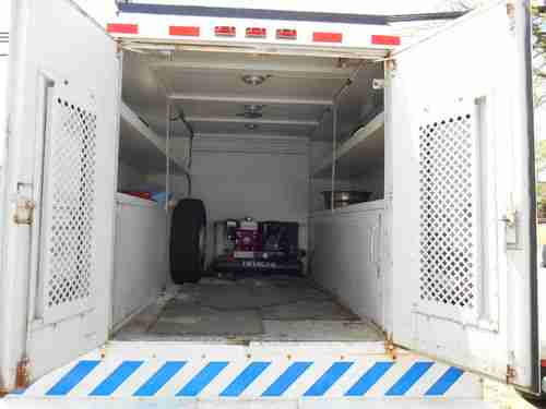 Fully enclosed Monroe custom steel bodies with compartment lighting, locking doors.