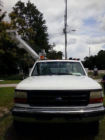 This Ford 450 is ready to work. Runs great. Has a V-8 diesel engine, standard 5 speed, AC, fully functioning crane, pressure washer, and CD player. All tools, except GPS, included.