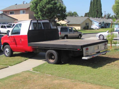 UP FOR AUCTION IS A 2001 FORD F-450 FLATBED WORK TRUCK. IT HAS A 7.2 DIESEL ENGINE. IT IS A AUTOMATIC TRANS. IT HAS 152K MILES. FOR A DIESEL IT IS JUST GETTING BROKE IN. THIS WAS A VAN CONVERSION AND HAD THEY EXTRA CAB ADDED ON FOR SOME EXTRA ROOM BEHIND THE FRONT SEATS. THE BED IS 10 FOOT. THE DECK IS BRAND NEW WOOD. IT HAS A FIFTH WHEEL HITCH ON IT. IT HAS A STEP BUMPER. A/C BLOWS COLD. POWER WINDOWS, POWER LOCKS. THIS WAS BOUGHT TO START A TRUCKING COMPANY, BUT WENT A DIFFERENT DIRECTION. TRUCK IS READY TO WORK.