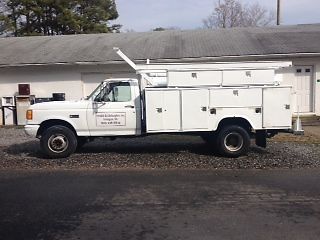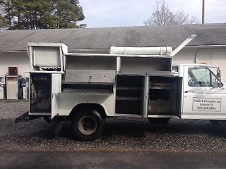 Owned this truck for 11 years. Used primarily to tow skidsteer loader and attachments. Towed it with no problem. Truck has plenty power. Have had no drive train trouble since I had it. Sold my business and do not need it any longer. Has some rust in front and behind rear wheels in bins. has a patch in drivers floor board from small rust hole. Originally was a bucket truck. Bucket component was removed after it failed to work any longer. This would be a great job truck. It has a ton of lockable storage. All cabinets have individual locking doors. Lower cabinets on both side also have a sliding lock bar at rear that locks all lower cabinets. Also drivers seat is ripped and missing some foam.