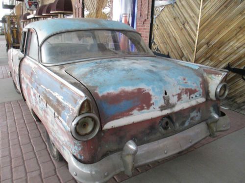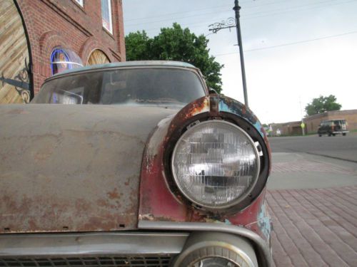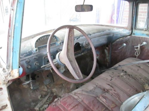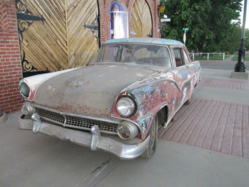 this 1955 ford is in much better shape than it looks. someone started sanding thru several layers of paint and it looks like a spotted owl.