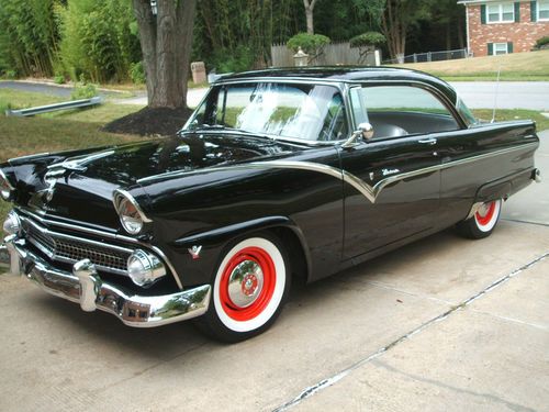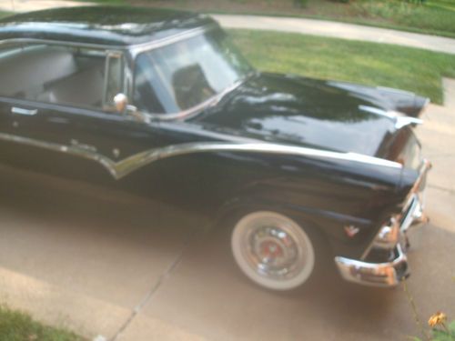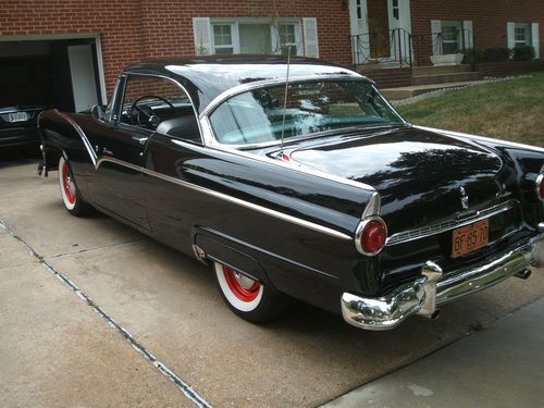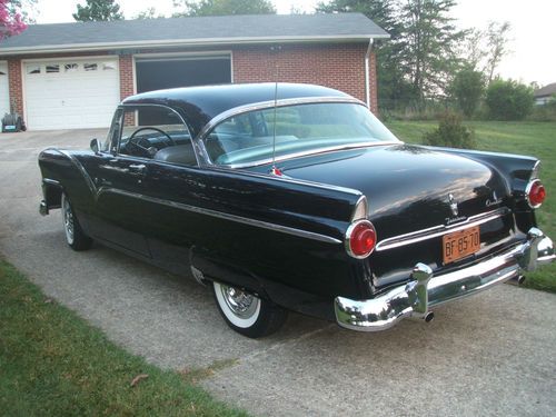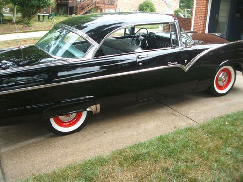 This is a rust free garage kept 55 ford victoria------The motor in this car has less than 2000 miles on it since 1956-----when I got this motor ,it was attached to a generator showing 17 hrs of usage since 1956 Those 17 hrs equated to 3 miles of usage according to the gauges on the generator---everything in this car is new/including transmission/rear end /front end/overdrive/3 dueces/interior/tires/hubcaps 2 sets/trunk mat/paint/new door glasses/w a new tinted windsheild/all new chrome/new silver /black interior I will gladly entertain any and all questions via phone or e-mail----------A TURN KEY 1955 FORD VICTORIA-----------BID WITH CONFIDENCE---THANKS-MY NUMBERS CELL 301-706-4470-HM. 301-372-6371-OFFICE 301-868-8140-ALMOST FORGOT -THE RADIO HAS BEEN REFURBISHED WITH A CONVERTER TO PLAY AN I-POD OR C/D PLAYER/NEW SPEAKERS /AM/FM EVEN THOUGH THE CAR IS STILL 6 VOLT-SOUNDS GREAT-RECONDITION BY RETRO RADIO/ELIZABETHTOWN,PA---OVER $55000.00 INVESTED -YOUR GAIN