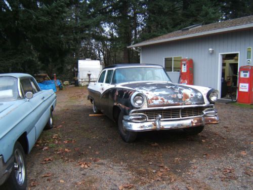1956 Ford Fairlane, this is a great project car. The car is from Eastern Oregon dry climate, the body is rust free with the exception of the drivers floorboard by the gas pedal and one small area behind the front seat. The fenders are rust free, even under the headlights. The rockers and quarters are good, the trunk floor and rear body panel are in good condition. Would be a great and easy quality restoration project. Comes with a good running 292 automatic, needs exhaust and wiring hooked up, windshield and door glass are cracked, comes with a good used windshield and door glass. Please email with any questions.