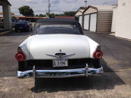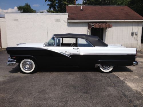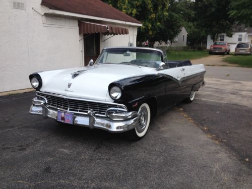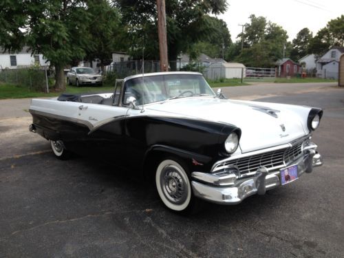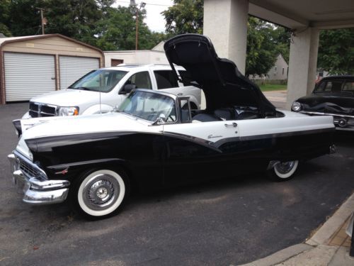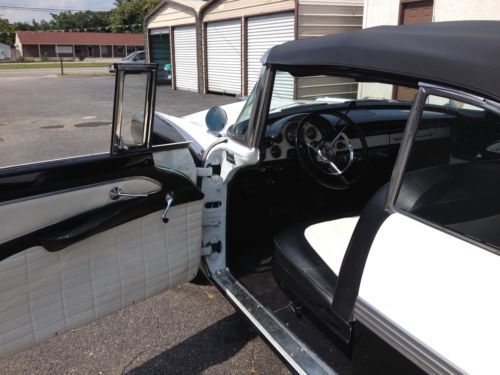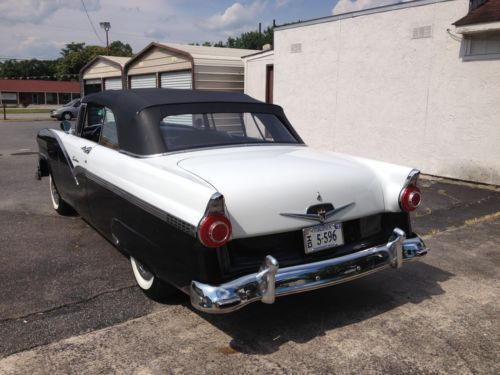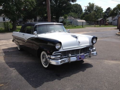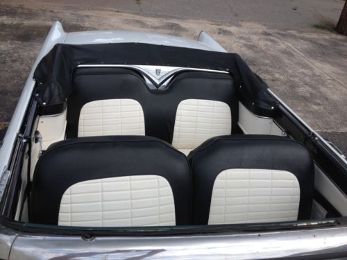 1956 Ford Fairlane Sunliner Convertible 312 V-8 Automatic Power Steering New Power Convertible Top Original Radio plays New Seats Door panels have been redone back to original Brand new set of wide white radials Wire Hubcaps Fender skirts Dual exhaust (comes out of the bumper like it did from the factory) The black paint is new The white paint is original Bumpers and Grill look like brand new The dash and all the trim inside have been repainted and look new! New Motor New Transmission New Rear end 350 Rear New Style Cut Down Steering Wheel This car looks and drives nice! This is not a show car, but a very nice car! I am listing this car for my father who does not use computers. If you have any questions you can call Ronnie at 804-733-7573. It is best to reach him, between 4-7 p.m. |