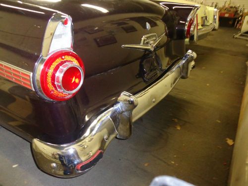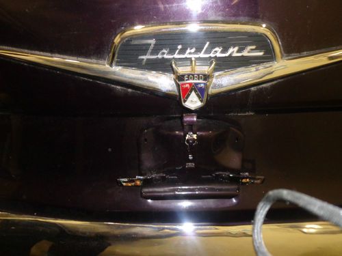 A 1956 FORD FAIRLANE 2 DR CLUB VICTORIA COUPE. BURGUNDY WITH CLASSIC WING STYLE STRIPING "FLYING V", NEW WHITE INTERIOR TRIMED WITH BRGUNDY. ORIGINAL DASHBOARD, 292 V8 AUTOMATIC 215 HORSE POWER, ORIGINAL RADIO. 46630 MILES COULD BE ORIGINAL BUT CANNOT VERIFY.