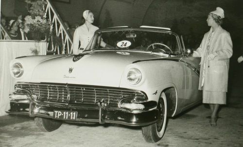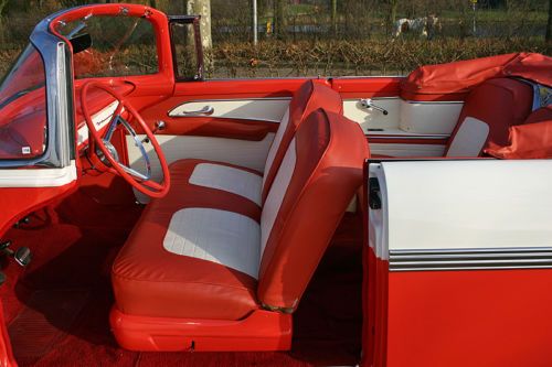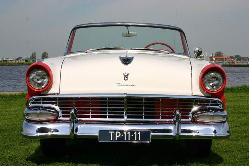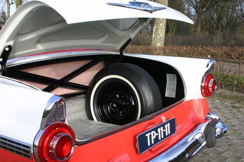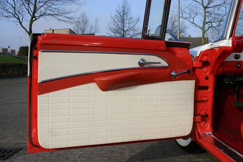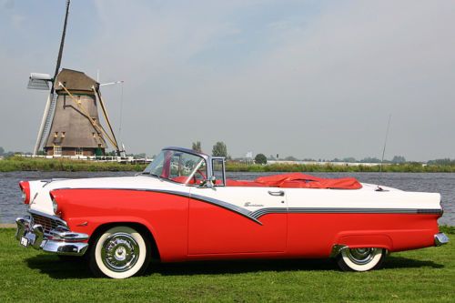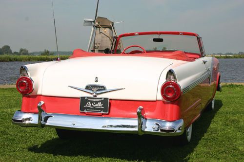 LaSalle Classic Cars proudly presents this totally restored 1956 Ford Fairlane Sunliner! LaSalle Classic Cars is specialized in high quality American cars of the forties and fifties. We are located in the Netherlands, Europe, near the Amsterdam Airport. Up for auction is this gorgeous ’56 Sunliner in a two-tone color combination of Sunset Coral and Colonial White. Very well, body-on restored in here Holland a few years past. Originally sold new in the Netherlands in all white exterior (see the B&W photo which was made in the late fifties). Equipped with the optional 292 cubic inch "Thunderbird V8” and the sporty manual “three-on-the-tree” transmission. It is in excellent shape and you’ll be hard pressed finding a better one! The original service book and owner’s manual (both in Dutch!) come with the car. Detailed vehicle condition: Exterior: Straight and solid body with excellent two-tone paint in “Sunset Coral and Colonial White”. All the chrome has been re-plated and is beautiful and shiny. All the moldings and stainless trim are in great condition with no dings or scratches. All the glass is perfect. Window frames are excellent. This car is equipped with the optional wire hubcaps and correct wide white walls tires. The car has a white vinyl convertible top. Top goes up and down quickly. The fit of the doors and panels is great. There is a scratch on the trunk which has been touched-up of about 1.5 inch, otherwise the paint is gorgeous! Interior: New upholstery two-tone vinyl with the correct pattern. Door panels are matching with the seat as per factory original. The carpet has been renewed with the correct materials. The dashboard has been repainted and also has the two-tone finish. The steering wheel is excellent and it has no cracks. The interior chrome is excellent. Everything works except for the radio. The trunk compartment has the correct trunk lining and is complete with the jack and spare. Mechanical: Originally equipped with the Thunderbird V-8 and 3-speed manual transmission. The car runs, shifts, steers and brakes as it should. Equipped with power steering and power brakes. New dual exhaust. All the lights function properly. The engine has been rebuilt, invoices are present. Underside: Solid floor pans, no rust or bondo repairs, everything looks healthy! The body, frame and undercarriage appear to be free of damage. The trunk floor is original and rust free. Engine compartment is clean en detailed. Location: The Sunliner is located in our showroom in Alphen aan den Rijn, the Netherlands, a 15 minute drive from the airport. Our showroom is open Wednesday till Saturday from 11:00 am till 5:00 pm or by appointment. Inspection on this car is welcome! Shipping: Worldwide shipping/transportation and export documents can be arranged by us, buyer pays for the shipping. Attention European bidders, EU-import tax has been paid. There are no fees, nor taxes for other European countries! Dutch registration. For questions please don't hesitate to contact Peter Straathof of LaSalle Classic Cars. E-mail: info@lasalleclassiccars.nl. Telephone: 0031653344796 (001131653344796 when calling from the U.S.A.). Go to our “Ebay Me” page for a link to our website. |