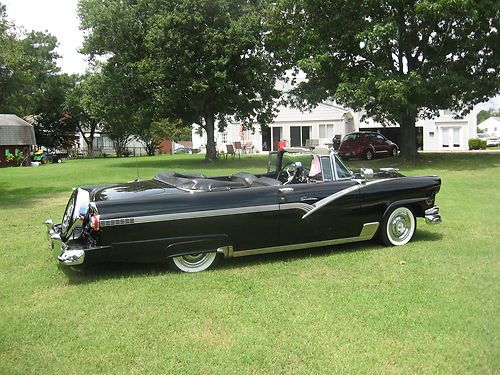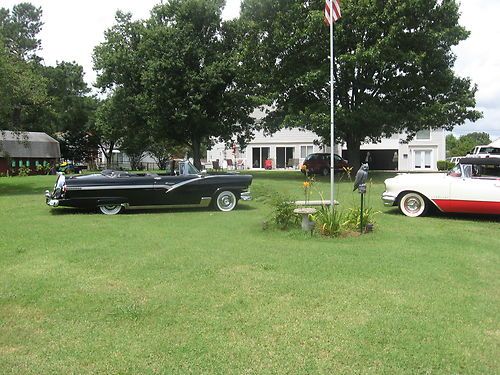 You are looking at a beautiful 56 Ford Vicky Conv That I have owned for a few years and really enjoyed. The car was not a frame off because it was in good shape to start with Paint is bright and shiney and show quality and the bright work is very nice Top is nice and all stanless around glass is nice and glass is nice Interior is beautiful Black and white Car comes equiped with Cont. Kit fender skirts rocker moldings Stone guards outside door handles guards fog lights back up lights and twin spot lights and they work also has spoke hub caps all 5 with 4 bran new radial wide white tires Dual exaust with glass packs the engine is a 292 4 barrel with power steering Engine does not smoke or over heat radio is original Town and country converted to am fm radio and works Clock does not work /// This vehicle is being sold as is /// and i reserve the right to end auction early because im also listed it local /// I also might consider a part trade/////// NO Junk///// Car must be nice The title says 60456 miles but im not sure if thats correct If you have any Questions you can call Iven at 757 714 1744