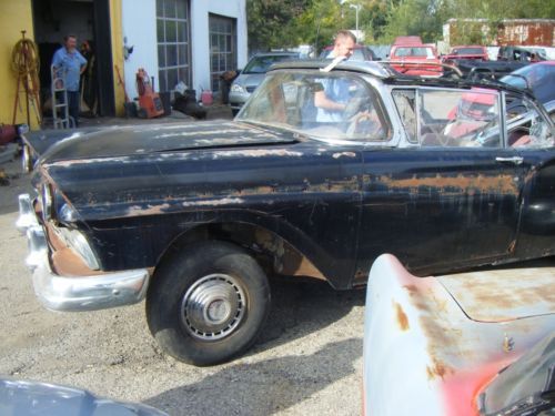 1957 Ford Fairlane 500 Convertible Sunliner Up for auction is this original 1957 Ford. There is no motor. According to the Data Plate it original had a 8 Cylinder. 312 C.I.D. OHV-4V Carb-Std 245 HP. The transmission is in the trunk, disassembled. The Odometer on the dash reads 45,422 miles. Complete original interior. The body is complete, no pieces are missing. There are brand new rocker panels and header panels in the trunk. All moldings are in the vehicle. Body has typical rust for it's age. This is a great project car and would be beautiful when finished. Clear Ohio Title.
