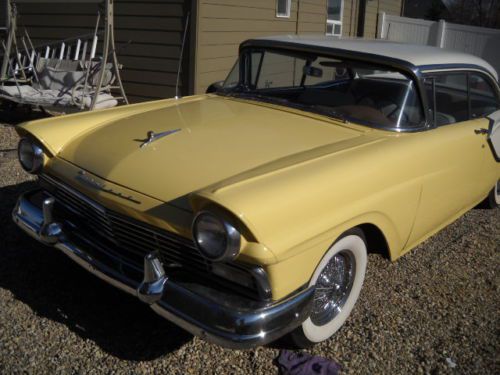 I AM SELLING MY 1957 FAIRLANE 500 2 DOOR HARDTOP TO THE HIGHEST BIDDER, THIS CAR WAS RESTORED A FEW YEARS AGO , THE MOTOR RUNS GOOD AND THE TRANSMISSION SHIFTS AS IT SHOULD, THE PAINT AND BODY ARE NICE LOOKING NO DENTS AND THE PAINT STILL SHINES, IT IS A VERY GOOD DRIVER QUAILITY RESTORE, SOME OF THE CHROME TRIM INSIDE AND OUT HAVE SOME RUST PITTING ON THEM , THE STAINLESS IS VERY NICE SHAPE AS YOU CAN TELL IN THE PHOTOS, THE INTERIOR IS ALSO IN PRETTY GOOD SHAPE AND WAS REDONE BACK WHEN THE CAR WAS RESTORED, THE TIRES HAVE WIDE WHITES ON THEM AND HAVE PRETTY GOOD TREAD LEFT ON THEM, AS I SAID THE MOTOR AND TRANS ARE IN GOOD SHAPE AND WERE REDONE WITH THE REST OF THE CAR, IT HAS A 4 BARRELL CARB AND NICE DUAL EXHAUST, THE POWER STEERING HAS A LEAK COMING FROM DOWN UNDER THE CAR FROM THE RAM SO SHOULD PROBABLY BE REPLACED, THIS CAR RUNS AND DRIVES DOWN THE ROAD AS A 57 FORD WOULD, THE BRAKES ALSO WORK VERY GOOD. IT ATTRACTS ATTENTION BOTH FROM THE YOUNGER CROWD AS WITH OLDER GENERATION, YOU CANT GO WRONG BY BUYING THIS CAR YOU CAN BASICALY JUST GET IN IT AND DRIVE THE HARD PARTS WERE ALREADY DONE, I REALLY LOVE THIS CAR BUT UNFORTUNATLY IT HAS TO GO, IM THINNING DOWN THE HERD AS I HAVE WAY TO MANY CARS, THANK YOU FOR LOOKING AND HAPPY BIDDING, I AM SELLING THIS CAR AS IS WITH NO WARRANTIES. IT WOULD BE THE RESPONSIBILITY OF THE BUYER TO ARRANGE AND INCOUNTER ANY FEES WITH SHIPPING THIS CAR .
