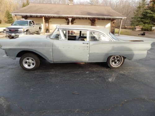 UP FOR BID IS A 1957 FORD FAIRLANE CLUB SEDAN. THIS CAR WAS PULLED OUT OF A BARN OVER 15 YEARS AGO AND STORED IN A HEATED GARAGE EVER SINCE. IT WILL NEED RESTORED. THE CAR USED TO BE AN EX DRAG CAR FROM THOMPSON DRAGWAY. THE CAR DOES RUN AND HAS ONLY BEEN DRIVEN IN THE DRIVEWAY. HAS A 351 MODIFIED AND A C-6 TRANS, A 9" REAREND, OLD SCHOOL DRAGBARS AND OLD SCHOOL MICKEY THOMPSONS ON IT. THE FRONT FENDERS ARE FIBERGLASS (NOT SURE IF THESE WERE FROM THE FACTORY). HAVE PRETTY MUCH ALL OF THE TRIM IF NOT ALL OF IT AND HAVE THE BUMPERS (NEED REDONE). ALL THE GLASS IS GOOD EXCEPT THE DRIVERS DOOR. WE DON'T KNOW TOO MUCH ABOUT THIS CAR AND JUST NEVER GOT THE TIME TO GET INVOLVED WITH IT. OUR LOSS IS YOUR GAIN. THIS WOULD DEFINATELY MAKE A GREAT FATHER SON PROJECT OR DRAG CAR. PLEASE FEEL FREE TO ASK ANY QUESTIONS AND GOOD LUCK BIDDING. PLEASE SEND AN EMAIL WITH PHONE NUMBER AND QUESTIONS AND WILL GLADLY RETURN YOUR CALL. |