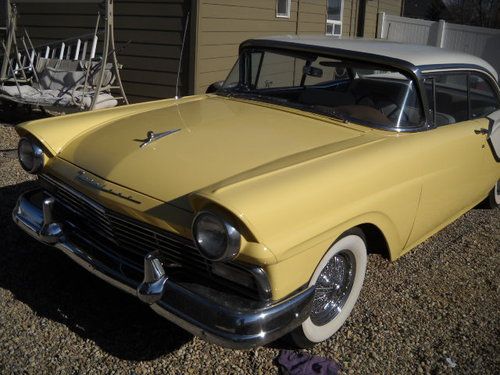 THIS IS A 1957 FORD FAIRLANE, ITS IN REALLY GOOD SHAPE HAS A 312 MOTOR AND 4 BARREL CARB, DUAL EXHAUST THAT SOUNDS REALLY GOOD, HAS A AUTOMATIC TRANS THAT SHIFTS JUST LIKE IT SHOULD NO PROBLEMS , BRAKES ARE ALL GOOD STOPS AS IT SHOULD THIS CAR HAD A REBUILD ABOUT 11 YEARS AGO AND HAS HAD HARDLY ANY MILES PUT ON IT SINCE, THE TIRES ARE ALL GOOD , THE PAINT AND BODYWORK WERE DONE PRETTY GOOD NOT A SHOW QUALITY JOB BUT A VERY NICE DRIVER QUALITY. IT GETS COMPLIMENTS EVERYWHERE IT GOES, THE INTERIOR LOOKS REAL GOOD IT WAS REDONE AT THE SAME TIME AS THE OUT SIDE, SOME OF THE CHROME TRIM HAS SOME RUST PITTING ON THEM FROM JUST SITTING SHOULD PROBABLY BE REDONE TO BE SHOW QUALITY, THE MOTOR AND TRANS WERE ALSO REBULIT THEN AND AS I SAID IT RUNS AND DRIVES PRETTY GOOD, SOME OF THE SUSPENSION SHOULD GET SOME NEW BUSHINGS IN THEM AS I HEAR A LITTLE CREAKING AS I DRIVE DOWN THE ROAD, I DRIVE THIS CAR ALMOST EVERYDAY EVEN IN 102 DEGREE WHEATHER WITH NO PROBLEMS , I AM SELLING THIS CAR AS IS WITH NO WARRANTIES WHAT SO EVER , IT IS THE RESPONSIBILITY OF THE BUYER FOR ALL SHIPPING CHARGES, I CAN HELP LOAD ON A TRAILER OR TRANSPORT TRUCK, IF YOU HAVE ANY QUESTIONS OR NEED MORE PHOTOS PLEASE CONTACT ME I WILL RESOPOND AS QUICKLY AS I CAN THANKS FOR LOOKING AND HAPPY BIDDING