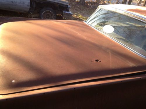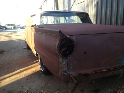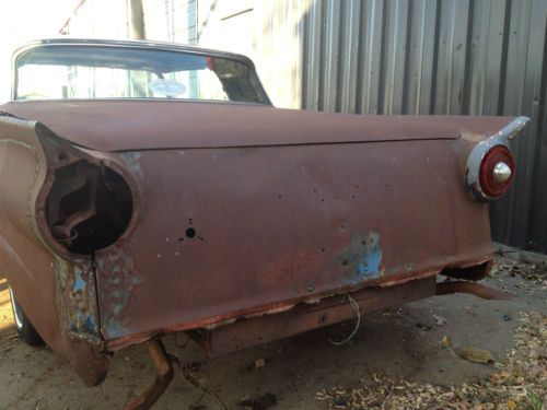 This is a 1957 Ford Skyliner Two door , convertable hard Top. This is a project and some body work is required . The car has extremely nice floors and trunk floor. Some rust is present in the rocker panles, and someone has replaced the driver side quarter panel. The car has a some rust spotting on the driver side front fender a long the bottom. The rest of the sheet metal is perfect and straight with very little dents and rust. Surface rust is present. The hard top is very nice complete and has no rusting and no dents. the doors are also very nice solid and straight. the Trunk has a bullett hole about a nickle size. I have the tail lights and all of the head light assembly. All of the glass is perfect and some of it in place. Vent windows are nice also. No drive and passenger roll up glass. The engine is in place and will need rebuild. The hood is not the correct hood but it goes as well , its off a 1958 car.The frame has no damge and is in perfect condition. The rear back seat is present, but does not have a front bench seat. I have extra parts that go with the car, extra quarter glass, upper control arms. Both bumpers and brackets front and rear are perfect with no damage but will need rechroming. Grill and radiator support are also in good shape. I do have a brand new fornt windshield that goes as well. No title with this car. I will give you a bill of sale ! Any questions please feel free to call me or text. Thanks Robert 479-466-1924