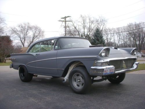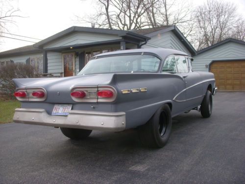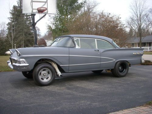 1958 Ford Fairlane 2 dr Hardtop street legal straight axle vintage drag style car. Powered by a tunnel rammed Olds 455 with dual Holleys. Drive train is a TH 400 and 390 gears. This is a great car for your weekend cruise, local car show, or some time at your favorite track.