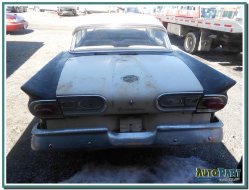 A BILL OF SALE ONLY IS INCLUDED WITH THE SALE OF THIS CAR 1958 Ford Fairlane 500 Town Club Victoria, 4 Door HARDTOP, 332c.i. 265 HP V8, 4BBL Carb, Fordomatic 2-Speed Automatic Transmission. This vehicle was a rare garage find at an estate sale. It was sitting in the garage since 1967 which is the last New York State inspection on the windshield. We have not even attempted to get it running. There is NO ignition or key. The floors and trunk pan look solid. The BODY TAG reads as follows: SERIAL NUMBER: G8EV132704 BODY: 57A COLOR: E TRIM: G DATE: 16M TRANS: 3 AXLE: 0 Three of the Original hubcaps and one earlier year are in the trunk. Obviously the car will need restoration but from the condition it would probably be easier than normal. A BILL OF SALE is included with the sale but there is NO TITLE for this vehicle. The new owner can get a TITLE from their Dept. of Motor Vehicles or from a TITLE service such as Broadway Title Company. ASK ALL QUESTIONS BEFORE BIDDING. WE WILL FULLY COOPERATE WITH ANY INTERNATIONAL BUYERS AND SHIPPING ARRANGEMENTS. AUCTION TERMS: |