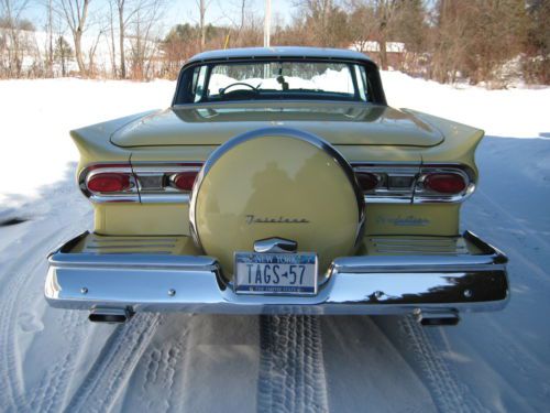 This is a nice original and VERY RARE 1958 Ford retractable with factory aire ride suspension. Only 9 retractables ever had this rare option on them from the factory. This car looks like it was partially restored in the 1990's. It is a great driver condition, it is very nice but is not a 100 point show car. The options on this car are as follows: factory installed aire suspension, power steering, power brakes, 3 speed automatic transmission, 352 police interceptor engine, power seat, power windows, padded dash and visors, NOS polar air conditioning, hockey stick rocker mouldings, continental kit, turbin wheel covers, wide white wall radial tires. The air conditioning system is a dealer installed unit that is NOS. The aire ride air pump is a NOS factory replacement unit. The air suspension system is complete but not functioning. There are 4 new reproduction air bags that have to be installed to be functional. This is an EXTREMELY RARE RETRACTABLE, so dont miss out on a rare chance to own such a rare car!!! If you have any questions please call 518-221-7281 between the hours of 8 AM and 10 PM EASTERN time. You are more than welcome to come and view the car in person, by appointment. A deposit of $2000 is required within 24 hours of the end of the auction. Balance is due within 7 days and can be made when car is picked up. Shipping is NOT free. There is NO WARRANTY, CAR SOLD AS IS. Thank you for looking, good luck bidding on this very rare car.