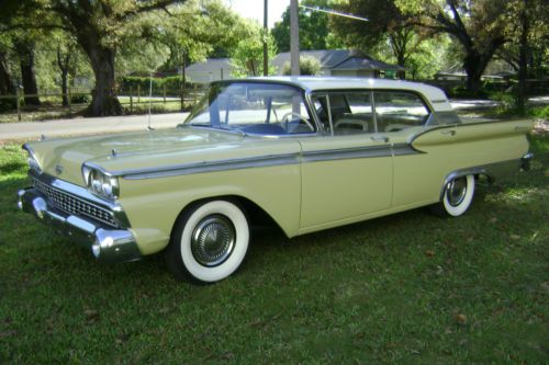 1959 ford fairlane 500,4 doors hardtop,run and drive good,352 v8 and automatic transmission,solid,the body is very straight,clean inside,the floors are good,the last owner already replaced the driver floor,the frame is solid,all light working and the gauges too,all glass are good except the front right size window,the paint look good but is not a frofessional paint,the chrome are good,the rear bumper has small dent,4 new white wall tires,the brakes are good,have power steering,clean florida title,I sell as is..$350 deposit after auction closed(no refundable).any question call 813 808 2658,thanks