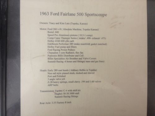 1963 Fairlane 500 Sports Coupe Orginal 260 V8 Motor on 2040-cars