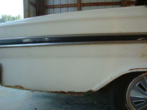Needs- Rust repair on roof (from moisture under vinyl top), rust repair on rear quarters, bumpers redone or replaced, some trim pieces straightened and cleaned or replaced (all is there), headliner, carpet and other interior parts. Rear seat is good, front has 2 bad places, door panels could be cleaned and used if needed. I have 2 good used front fenders for replacements, also have some patch pieces for the quarters I cut off another car. All glass is good, rear window is out for rust repairs to window channels. It will need a new battery tray welded in(common issue) This car was undercoated, so the rear frames are good.