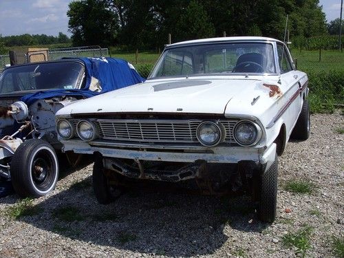 Up for auction is a 1964 Ford Fairlane Gasser. Has 9in ford rearend, gasser spindle front rims, crager S/S on the rears. There is no engine or transmission in the car, there for it is a roller. I do have some extra parts like slicks that are avaliable for extra cost. Going to need to work to get ready for track. Lots of potential in this gasser. Would make a great father son project. For more information or questions please call Russ at 419-231-1759