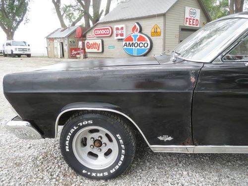 1966 Ford Fairlane with 289 ci V8 3 Speed Manual Trans on the floor. Runs and drives great, black with red interior. Ready to drive or to restore. The cars body is pretty darn straight for the most part. It will need restored. The front seat will need recovered, the door panels, rear seat, headliner are all in good condition as well as the rest of the interior. It does need front floor pans patched as there is 2 small holes. All the chrome is on the car and in great shape except the rear fender pieces. All the lights, wipers, blower, flasher, dome light, and dash lights work. The 289 v8 has plenty of snort to break the tires loose and go. Tires have a lot of tread left on the peanut style wheels. All the glass is in great shape, no cracks, chips, or breaks. Car is complete and ready for your needs. For more information feel free to call or text 1-712-310-3737 or 1-402-415-8981, if no answer email us or leave a message and we will get back to you. Thanks for looking and have a nice day!
