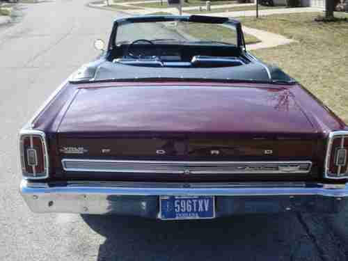 SOUTHERN RUST-FREE 1966 FORD FAIRLANE 500XL CONVERTIBLE. SUPER SHARP. COMPLETELY RESTORED TO FACTORY SPECS EXCEPT THE MOTOR. THE ORIGINAL 289 WAS RECENTLY REBUILT AND ADDED MORE HORSEPOWER. ENGINE COMPARTMENT IS HIGHLY DETAILED FOR SHOW. NEW MIRROR FINISH VINTAGE BURGUNDY, NEW CHROME, NEW BLACK TOP, ALL NEW INTERIOR, BUCKET SEATS, CONSOLE, POWER TOP, ETC. THE UNDERSIDE IS NICELY DETAILED WITH NEW DUAL EXHAUST, PAINTED GAS TANK, ETC. BRAND NEW TIRES. TRUNK COMPARTMENT WAS COMPLETELY DETAILED, HAS THE JACK & SPARE. RUNS AND DRIVES PERFECT, SOUNDS AWESOME! CAR IS BEING SOLD AS IS AS SHOWN WITH NO IMPLIED WARRANTIES. COME TAKE A LOOK AND A DRIVE. YOU WILL BE VERY IMPRESSED.